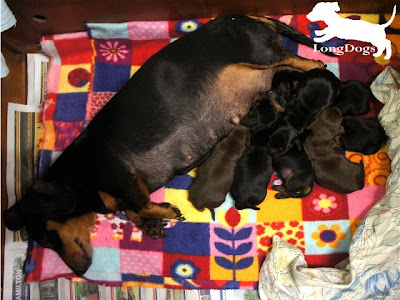 It has been way to long since we posted, so the Long Dogs, Meah and I thought we would share some exciting news. Our Evie had a beautiful litter of puppies on the 15 October, wait for it Seven! Yes 7! Six handsome boys and one very precious girl.